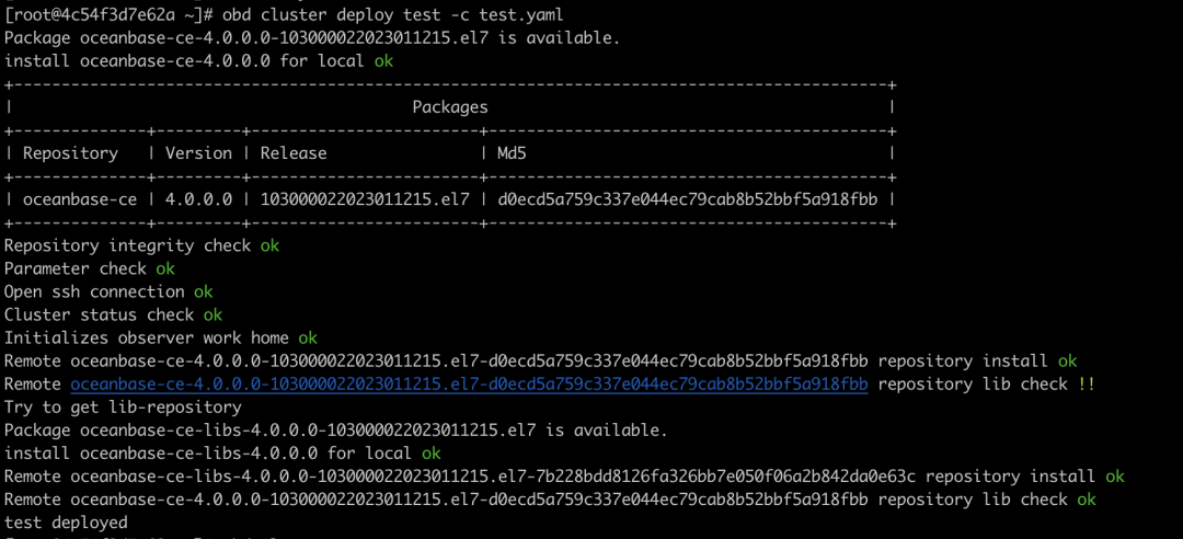 3. 使用 OBD 部署 OceanBase 单节点集群