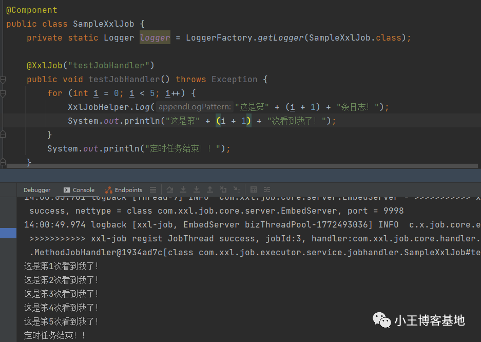 XxlJobHelper.log("这是第" + i + 1 + "条日志!");