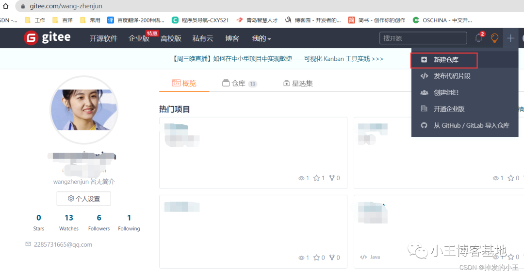 二、Gitee新建仓库
