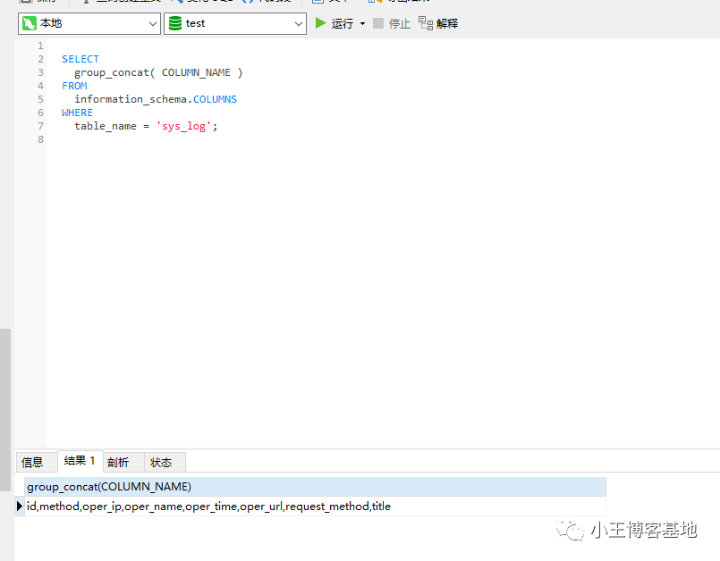 第一种比较简单是mysql自己结构中存在的表中的列信息,我们查询出来拼接一下就可以了: