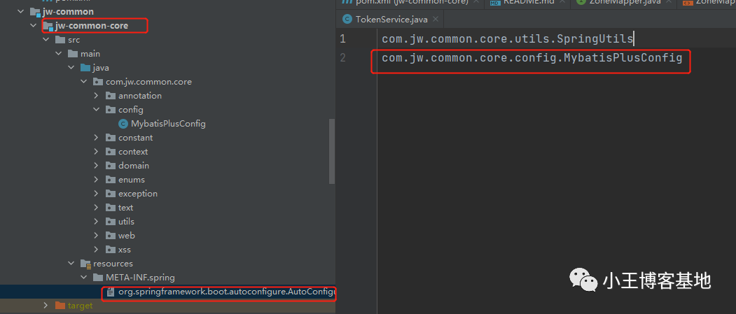 我们发现在core中已经给了我们提示,他配置了一个,我们只需要把我们刚刚写的配置类加上去,就可以扫描到这配置,然后生效了!!