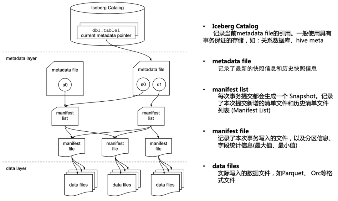 介绍 Iceberg Index 功能之前,我们先简单介绍下 Iceberg 的架构。Iceberg 具有分层的元数据架构,如下如所示。