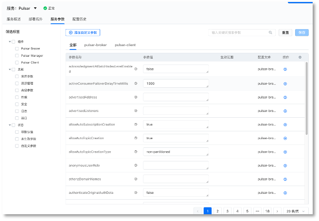 用户可以在控制台对 Pulsar 的参数进行配置: