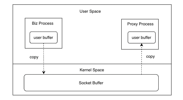 在生产环境中比较广泛使用的进程间通讯方式是 unix domain socket 与 TCP loopback(localhost:$PORT),两者从 benchmark 看性能差异不大。从技术细节看,都需要将通讯的数据在用户态和内核态之间进行拷贝。在 RPC场景下,一次 RPC 流程中在进程间通讯上会有四次的内存拷贝,Request 路径两次, Response 路径两次。