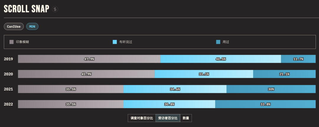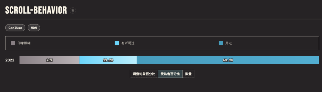 用于控制滚动效果,在 2022 年的调查中,使用率已经超过了 60%,普及率很高。