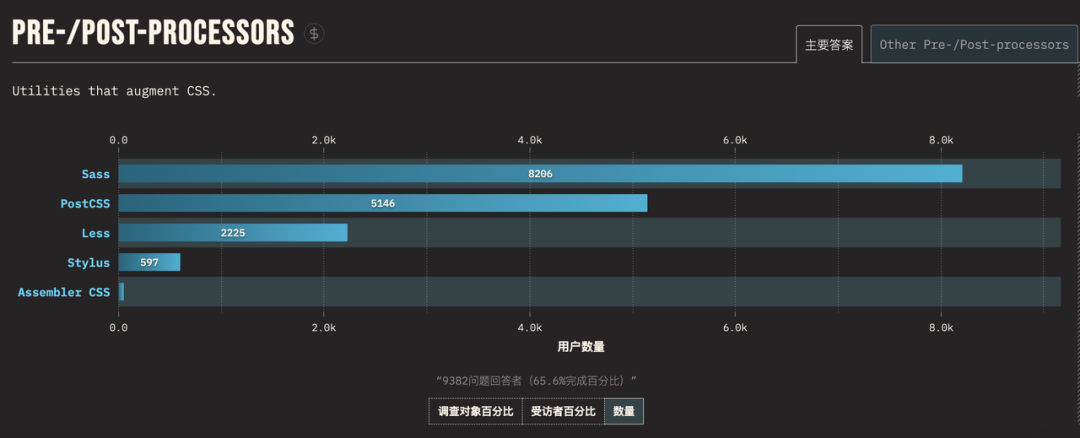 预/后处理框架近几年一直很稳定,今年仍然没有什么新的变化,还是 PostCSS