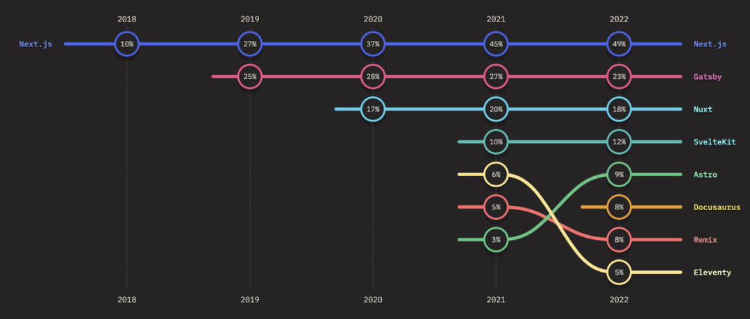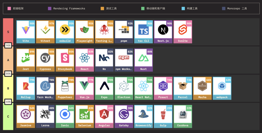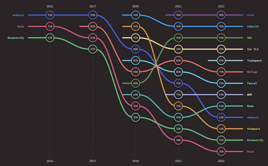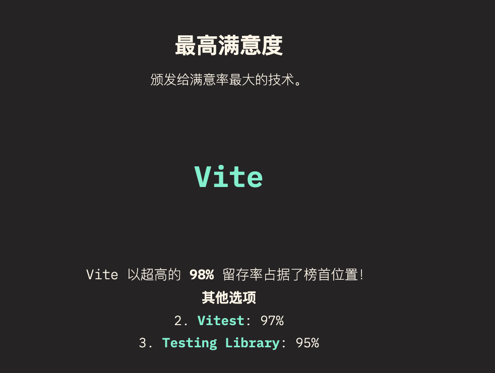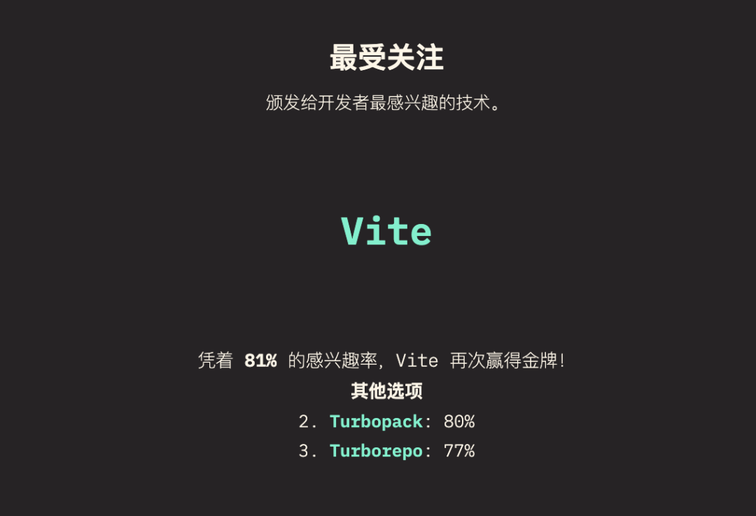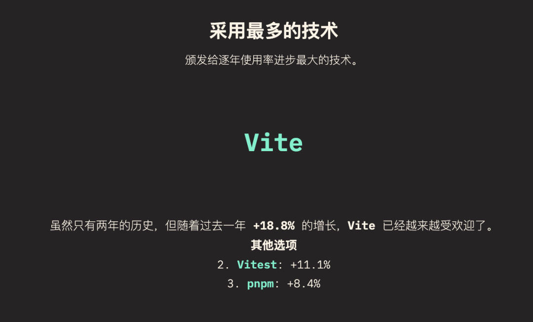 当然,Vite 连续第二年成为了 JS 最大的亮点,这说明构建和服务技术正在取得巨大的进步,我们也都从这一巨大进步中受益。