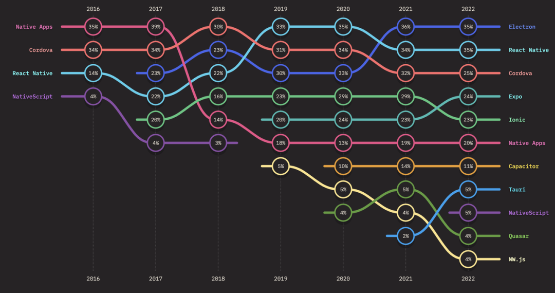 从使用率来看,还是这两位熟悉的面孔:Electron