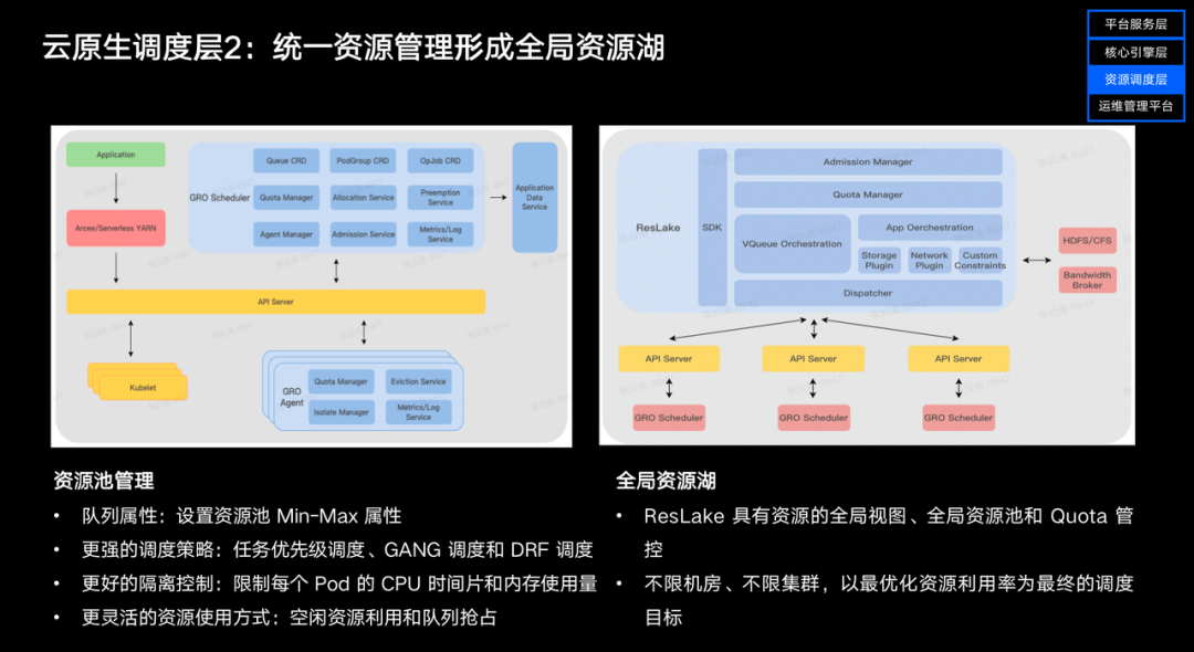 统一资源池(左图);支持跨集群、跨机房、跨地域的全局资源湖(右图)