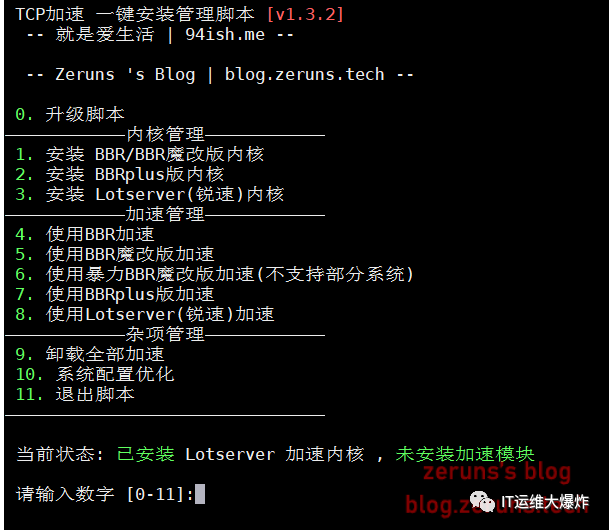 如果必须安装或是转换其他版本的加速,必须再次打开脚本来进行卸载。卸载完成之后再选择所需的版本进行安装,之后需再次打开脚本来进行功能选择。