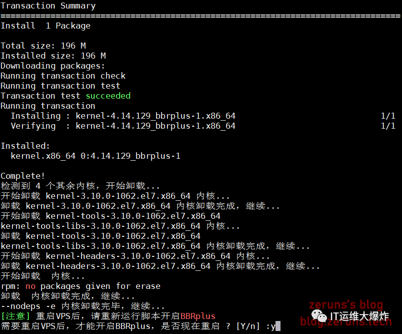 以安装BBR plus为例,输入数字2来安装。重启VPS如图:
