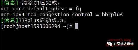如出现如图所示的信息,则表明BBR的加速功能已成功打开: