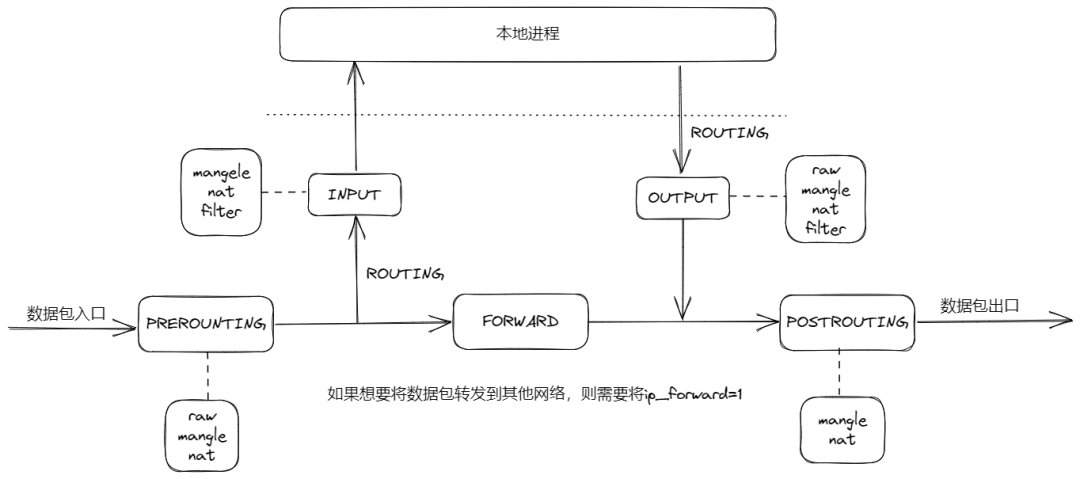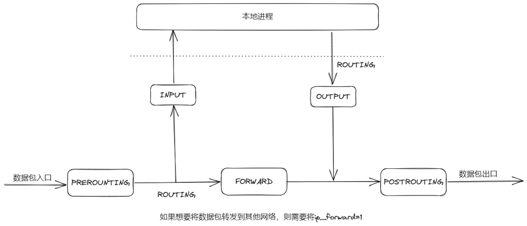 iptables有5条内置链分别对应着netfilter的5个钩子: