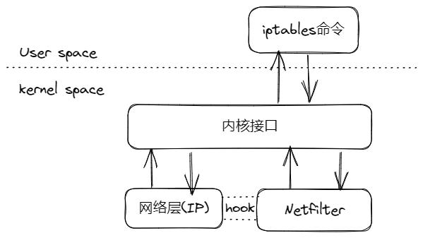 iptables的底层实现是通过Linux内核中的Netfilter框架来实现的。iptables是用户空间的一个程序,通过netlink和内核的netfilter框架打交道,负责往钩子上配置回调函数。