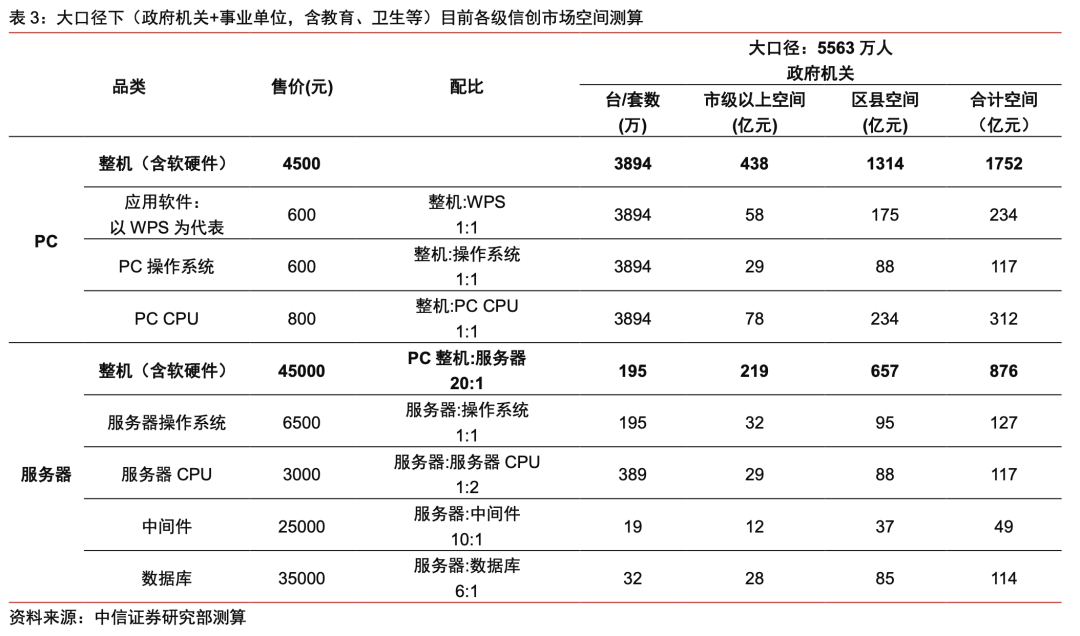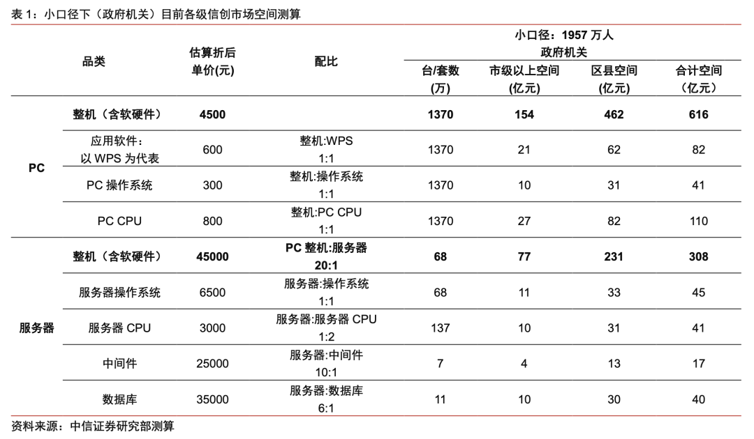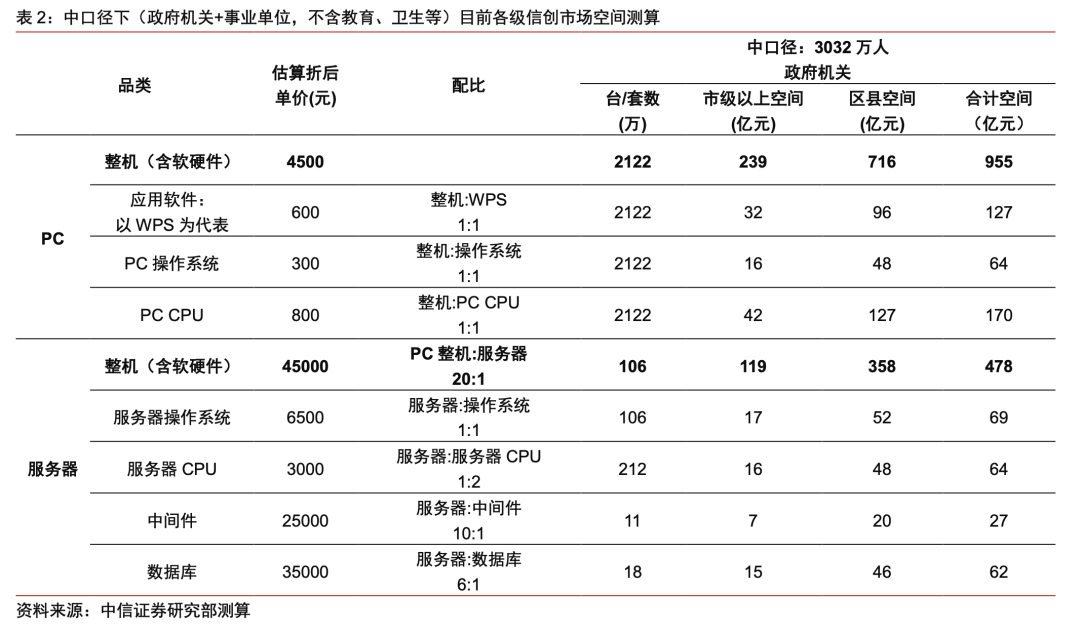 本文来自 中信证券 发布的《信创市场,空间测算:计算机行业“构筑中国科技基石”系列报告》