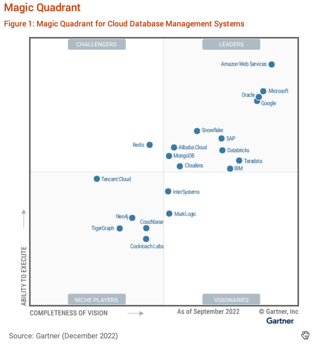 来自2022 Gartner Magic_Quadrant_for_Cloud DBMS