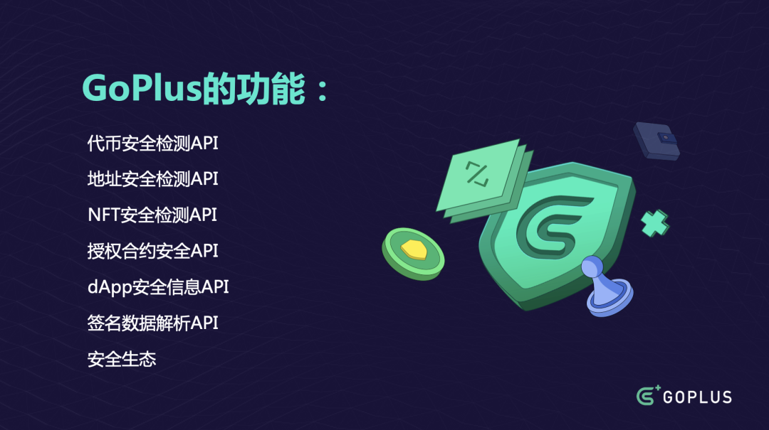 GoPlus Security 是一个专注于为不同类型的区块链用户提供安全服务的平台,旨在通过提供开放、无需许可、用户驱动的安全服务,构建Web3安全基础设施。截至2023年5月4日,GoPlus Security 已经成功覆盖了 2.81M+Token、4M+verifiedNFT、119K+授权合约、5000+dApp 的检测,并且每天能够处理超过3000万次的查询请求。