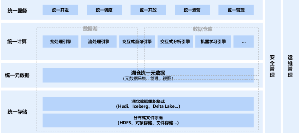 面向业务诉求,为原始数据、中间数据、业务数据、归档数据提供高可靠、高扩展的存储空间和数据管理能力,支持存储兼具数据湖与数据仓库的多种数据格式,在读写上实现热点数据高吞吐低时延、温冷数据大容量低成本的特质。通过通用的数据组织格式,如Hudi、Iceberg、DeltLake等,实现数据的统一存储访问。通过采集、适配、拉通与管理数据湖与数据仓库中的元数据,构建统一元数据目录和数据视图,真正实现数据湖与数据仓库数据共享,提供湖仓一体化的元数据服务。集成批处理引擎、流处理引擎、交互式查询引擎、交互式分析引擎、机器学习引擎等通用数据处理引擎,覆盖数据处理全场景,通过统一元数据管理,实现与统一的存储的无缝对接。为上层业务提供一体化的数据服务体验,无需关注底层异构环境,为数据开发者、数据使用者、数据运营管理者提供统湖仓一体化服务能力。满足多样化运维需求,支撑平台管理员、各类运维人员或使用者及时发现、定位并处理问题,提高运维效率。依据三法一条例,构建全面的安全保护解决方案,从系统层安全、数据层安全、应用层安全构筑完整的安全管理能力。基于数据湖与数据仓库现有能力,对标湖仓一体的架构进行补充与完善,实现向湖仓一体架构的平滑演进。中国移动秉承“开放、创新、合作、共赢”的理念,通过大数据“梧桐引凤”计划,打造丰富多样的大数据产业生态圈。坚持科技创新,联合“产学研”力量,搭建合作伙伴库,完善合作模式,进行行业深入融合。建立联合创新载体,推动科技成果转化与创新产品孵化。积极推动大数据相关的国标/行标/团标制定、系统架构和应用示范落地,促进产业协同和快速发展。履行央企责任,勇于承担国家重大科技任务,加强关键核心技术攻关,为我国大数据产业国际竞争力做出应有贡献。