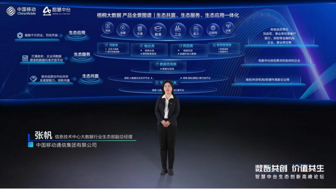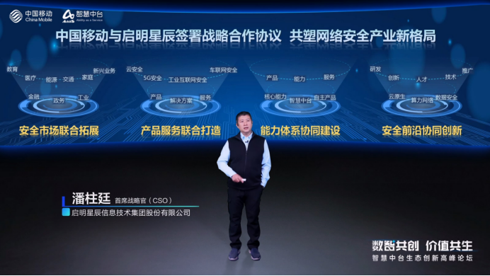 中国移动信息技术中心副总经理陶涛在论坛上发布了“大数据子链合作计划”。他表示,在中国移动发出 “十百千万”合作伙伴上链倡议后,大数据子链共收到102家单位的上链申请,目前已确定10家“百”链核单位、29家“千”链环单位以及63家“万”生态合作单位。大数据子链在各方支持下,已经初步发挥作用,未来还将携手合作伙伴围绕产业协同共治、产业联合攻关、产业创新培育、产业资本融通、产业供需衔接和国际合作发展六个方面形成产业链协同机制,推动实现要素的优化配置,共创产业发展的最大值。中国移动信息技术中心副总经理陈国在主题演讲中表示,中国移动希望携手产业链合作伙伴共同构筑基于智慧中台的“AaaS+”发展生态。一是汇聚“百+”能力打造开发伙伴,共建能力创新生态,创新叠加业界更多引领性优质能力,形成优势互补,强化融合创新,推动能力品质、服务再上新台阶;二是携手“千+”能力应用合作伙伴,共创合作经济生态,孵化新产品、新商机,打造新业态、新模式;三是服务“万+”能力使用行业伙伴,共促产业生态,进一步推进“AaaS+”赋能经济发展、社会治理和民生改善,共促产业变革,共赢商业价值。华为分布式存储领域副总裁韩振兴就《YB数据时代下如何打造湖仓一体的创新存储底座》主题进行了分享。他指出,企业大数据分析正走向湖仓数据融合的全新时代,这对数据存储提出了新的挑战。华为分布式存储一路以创新为征帆,通过在软件架构、硬件设计和解决方案上的突破与重构,实现统一数据格式0迁移、全场景混合负载高效、硬件高密低能耗、EB级数据灵活扩展、热温冷数据分级和跨域数据流动,敏捷支持企业实时数据分析业务。亚信科技首席技术官欧阳晔博士就《边缘 AI 助推智慧中台,赋能行业数智化转型》主题进行了分享。他表示,5G和边缘AI作为中国移动智慧中台技术体系的一组新型通用目的技术组合, 可将云端智能投送至边缘,赋能行业数智化转型。通过5G无处不在的连接能力,结合软硬一体化的边缘AI设备,智慧中台可将云端AI能力投送到千行百业的边缘应用场景,助力行业打造云边端协同的智能业务。未来,亚信科技将与中国移动持续提升边缘AI引领力,共同推进智慧中台AI能力的云边端协同演进与落地。启明星辰首席战略官潘柱廷就《移启同行·护航智慧中台百千万行动》主题进行了分享。他表示,中国移动与启明星辰签署战略合作协议是双方强强联合,全力促进战略协同的一大突破。启明星辰通过将安全能力与智慧中台技术、业务发展方向匹配融合,加强在基础安全、业务安全、终端安全等五大方向的安全能力,既进一步完善了智慧中台的安全业务板块,也使成熟、优质的安全能力能够更快速、更准确、更智能地触达用户,实现为千行百业安全护航。科大讯飞运营商事业部副总裁王庆林介绍到,科大讯飞积极投身数字经济和人工智能发展浪潮,在“数字安徽”建设中,与中国移动紧密协同,基于中国移动磐基容器云平台提供成熟稳定的能力底座,打造数字政府、政务云标杆,共同赋能“数字安徽”建设和蓬勃发展。面向未来,双方将以“数字安徽”合作为契,结合智慧中台生态能力,深化助力安徽省一体化政务服务建设。阿里云企业云服务业务职能部总经理谢纯良就《阿里最佳实践服务智慧中台能力绽放》主题进行了分享。他表示,硬搬信息时代孤岛式建设的方法和技术,做不出云时代的集约化的敏捷业务。云时代企业采用中台架构进行业务能力封装并持续运营迭代,能够更好地实现业务敏捷与持续创新。阿里云与中国移动在智慧中台领域已经展开了多项产品与技术合作,沉淀了大量可复用的业务能力,未来双方将在组装式领域继续加强合作,输出优质能力普惠社会。58同城首席技术官邢宏宇分享了《智慧中台能力5G随e签能力推动房产数智化创新实践案例》。他表示,在房产领域的全流程线上化业务场景中,在线签约是其中十分重要的一环。端到端的全生命周期管理、安全合规的数字服务保障、无感知系统连接所带来的的良好用户体验,是做好线上签约、保障安全交易的关键因素。智慧中台的5G随e签所提供的跨空间签约能力在快速链接用户和房屋、打造数字化生态核心平台方面发挥了良好的纽带作用。未来,双方将不断深化合作,为用户提供更优质的服务保障。中国移动信息技术中心大数据行业生态部副总经理张帆围绕梧桐大数据产品赋能百业等内容进行了分享。她表示,大数据不是一个单一产品,而是一种思维方式,是把“用数据说话”贯穿在企业的决策、运营、生产的数智化转型中,将“数据向善”应用于生活娱乐中。中国移动将这种思维方式有效地运用在内部企业管理、市场推广、客户服务等各项工作中。当数据作为一种生产要素在市场流通时,中国移动将积极拥抱市场,不断丰富大数据产品,推动社会数智化转型和高质量发展。