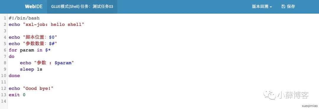 • 20、脚本任务:支持以GLUE模式开发和运行脚本任务,包括Shell、Python、NodeJS、PHP、PowerShell等类型脚本;