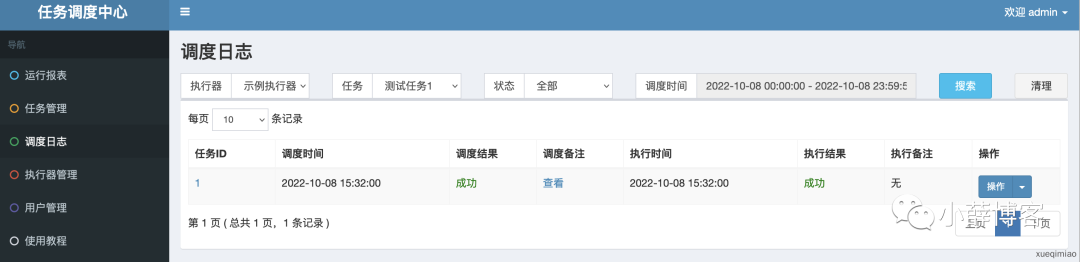 作用:统一管理任务调度平台上调度任务,负责触发调度执行,并且提供任务管理平台。