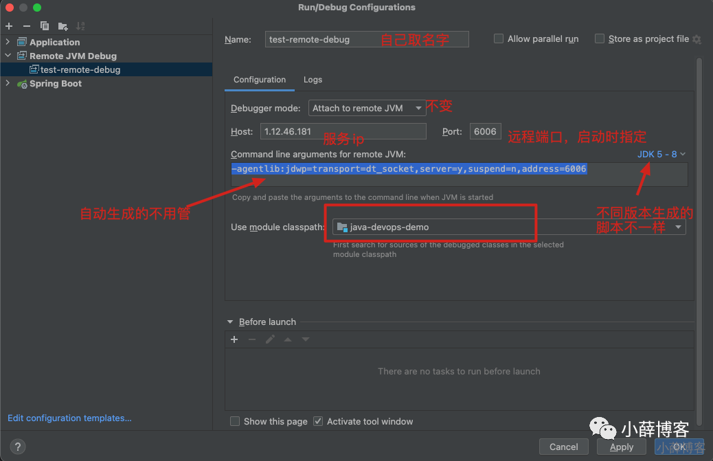 指定了 JDWP 服务监听的端口号。-jar java-devops-demo.jar