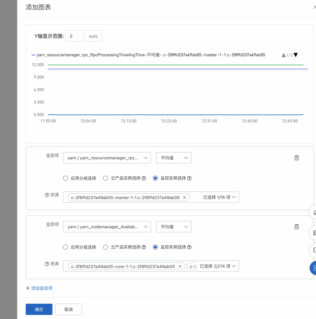 监控实例选择您需要监控的集群id,支持多个指标配置,完成后点击确定。
