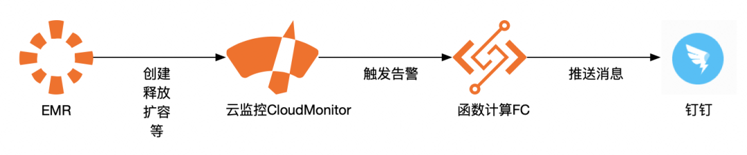 E-MapReduce,CloudMonitor,函数计算,事件通知,钉钉