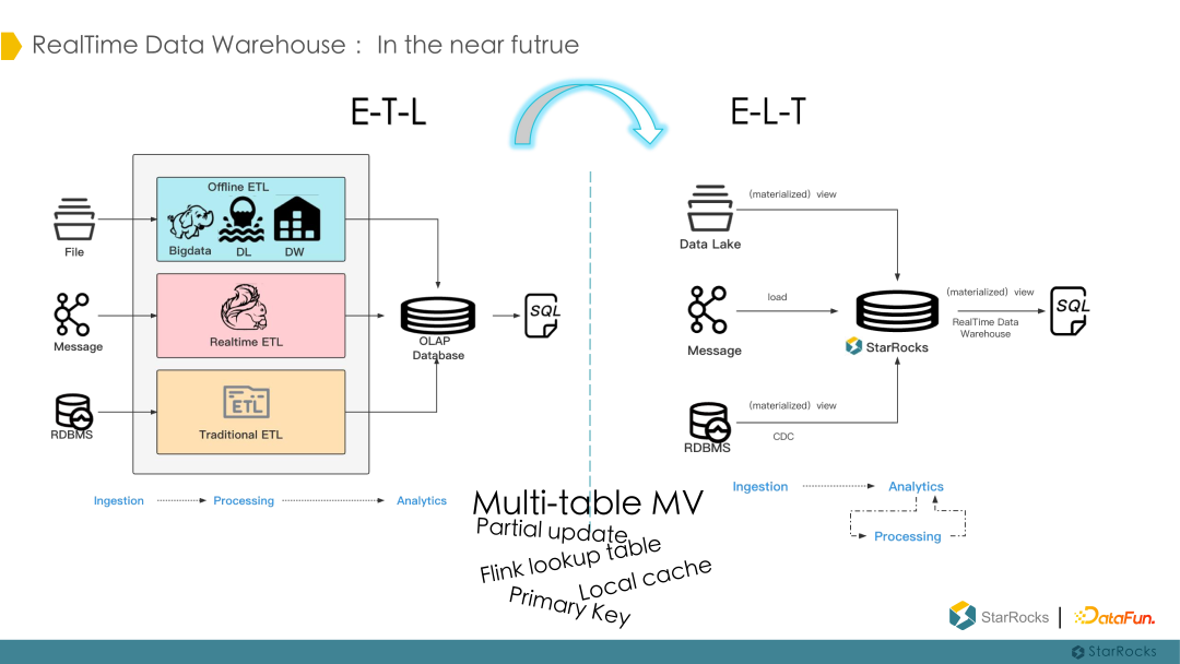 Resource Group:StarRocks 2.3 已经支持了 Resource Group,能够实现大小查询的资源隔离,未来会做更精细的资源隔离功能,让资源隔离功能更可靠。 Partial Update:使用 Partial Update 的能力,可以让建设实时数仓时不用大量地去建宽表,类似 Apache Flink 多流 Join 的操作可以更多地下沉到 OLAP 数据库来做。 MTMV:多表物化视图。StarRocks 2.4 会发布一个初版的离线多表物化视图,很大程度会简化数仓模型。明年 Q1 的时候会提供增量的物化视图,来应对实时的场景。 SaaS:我们会提供一个 SaaS 版本,方便客户快速以 BYOC 的模式部署 StarRocks 集群。