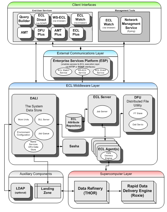 2000年Seisint公司利用C++开发了一套分布式数据处理平台名字叫做HPCC系统。这套系统可以自动的把数据进行分区、存储到多个商用服务器存储中,用户可以采用一个声明式的数据流语言ECL进行数据的处理和分析。