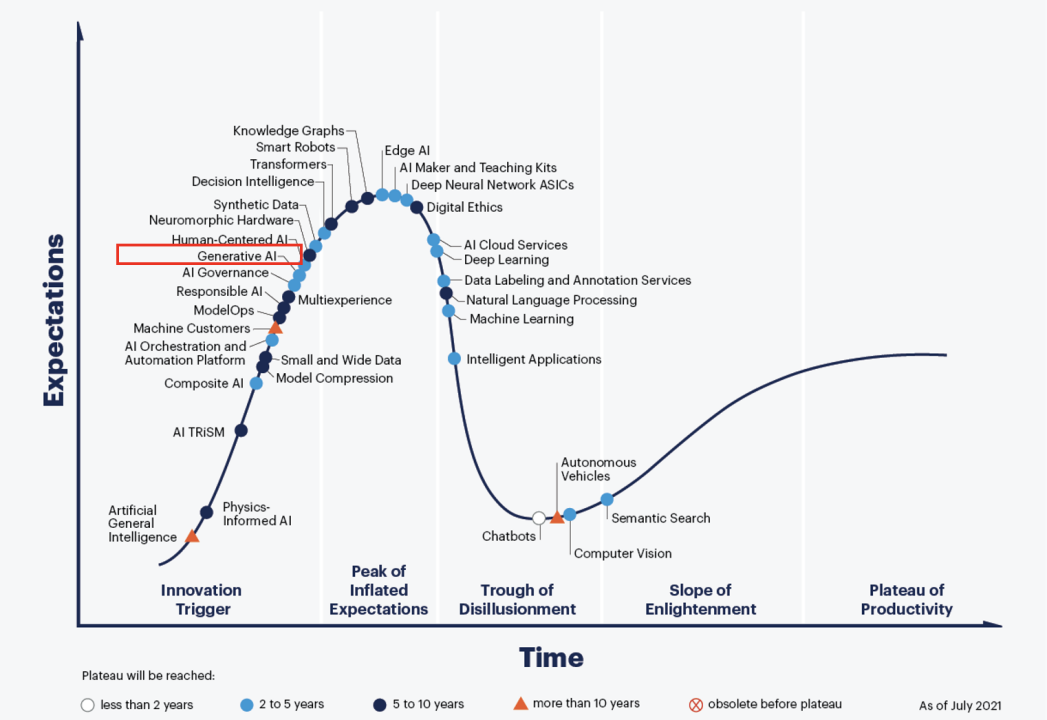 ChatGPT背后的支撑是人工智能大模型技术。ChatGPT是生成式AI的一种形式,Gartner将其作为《2022年度重要战略技术趋势》的第一位。Gartner预测,到2025年,生成式AI将占到所有生成数据的10%,但目前这个比例还不足1%。