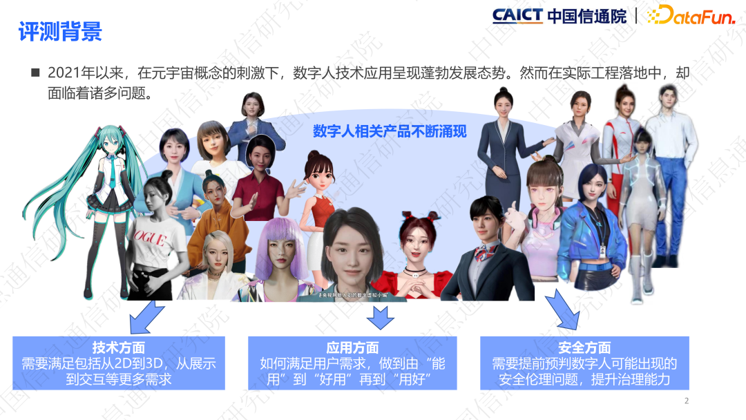 - 在评估测试方面,我们会进一步打造全国领先的数字内容生成检验检测能力,支撑相关前沿技术验证和评估测试。目前第二轮数字人系统基础能力和性能分级评测正在火热进行中,欢迎大家参与我们的评测工作。