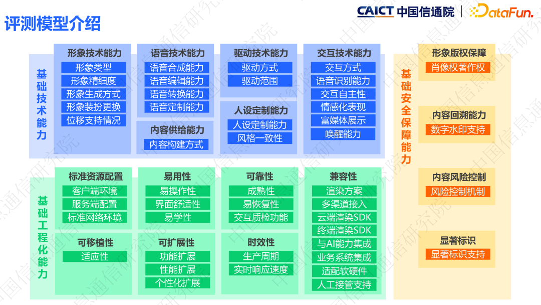- 基础工程化能力主要从标准资源配置、可移植性、可扩展性、兼容性、时效性、可靠性等方面,考察数字人系统非功能性能力是否满足支撑业务规模化应用落地。