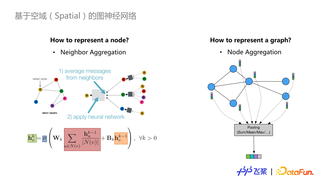 在基于空域的图神经网络里面,我们通常是关注两个点,一个是我们怎么做邻居的聚合去得到中心点的表示;另一个是我们有一张大图了,怎么去通过节点的汇聚得到整个图结构的表达。
