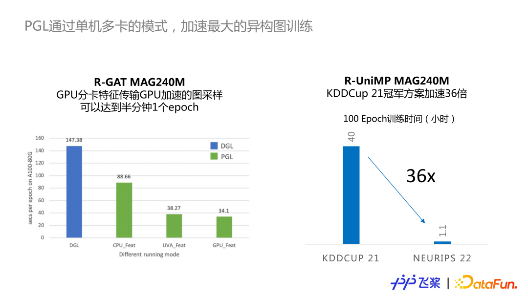 A4:单机 8 卡的话在卡内就可以用 NVLink 这些技术去做。多机的话还涉及到 embedding,例如跨机里面会包含一些网络带宽的一些问题。黄正杰,百度自然语言处理部资深研发工程师,毕业于中山大学长期深耕语义表示计算、图学习等领域的研发工作,目前是飞桨图学习框架 PGL 负责人,并负责相关工作在百度搜索、信息流、商业广告等核心产品的应用落地。在 KDDCUP-2021 图学习比赛获得 2 个赛道冠军,在人工智能顶级会议 KDD、IJCAI 等发表多篇学术论文,拥有多项相关专利。