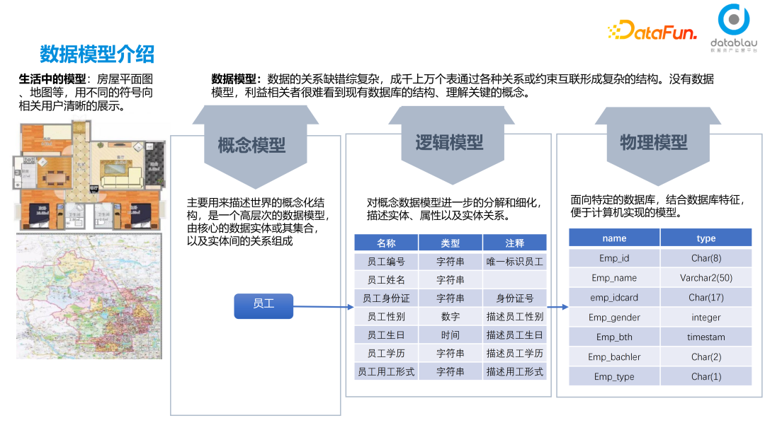 ② 进一步,基于企业现有的技术环境和性能要求,将概念模型和逻辑模型转化成可落地的物理模型;
