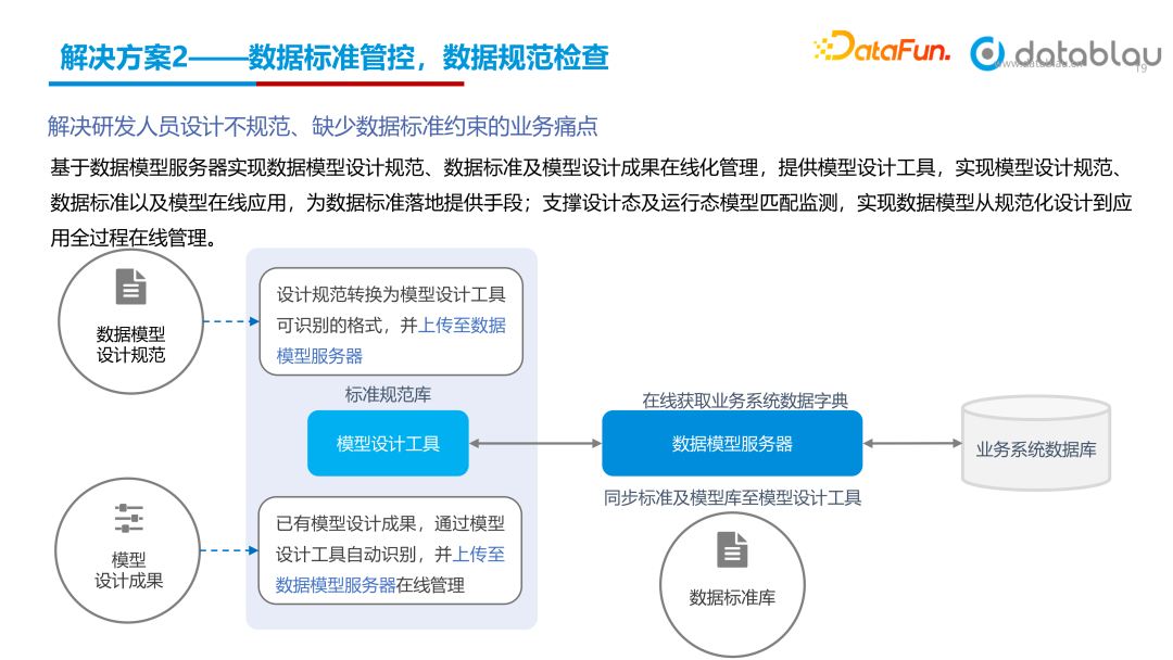 将开发规则内置到建模过程中,开发对应的数据规范工具和数据标准一致性检查工具,以解决研发人员设计不规范、缺少数据标准约束等业务痛点,最大程度地降低数据治理的成本: