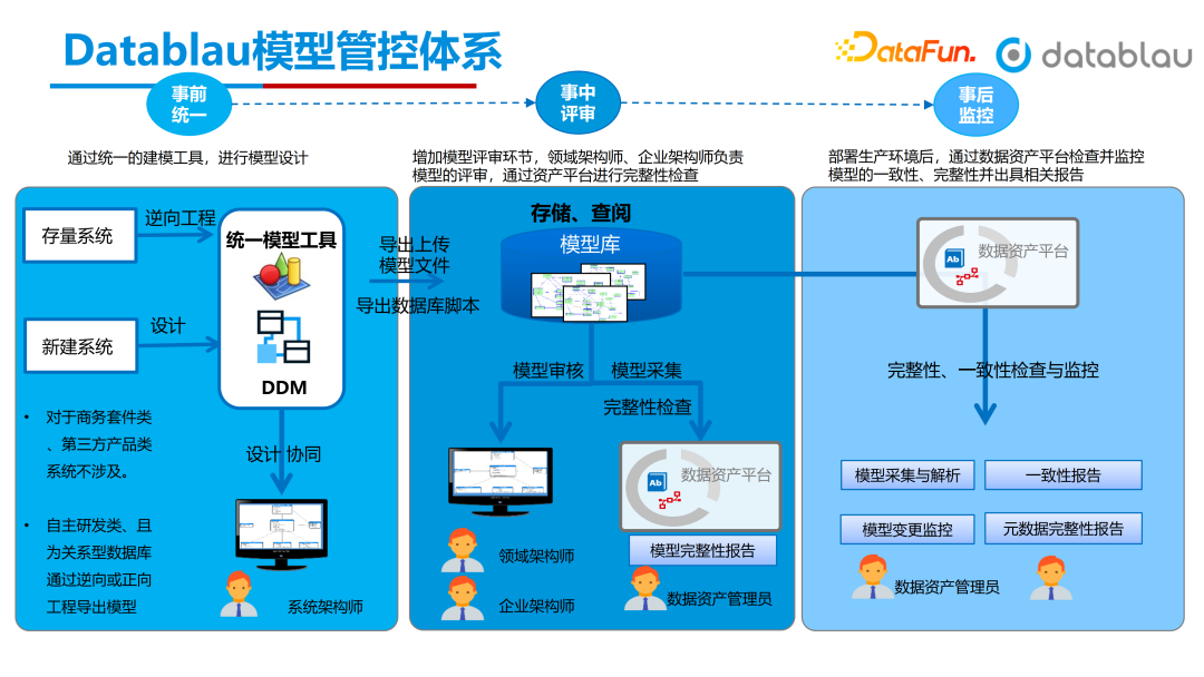 Datablau 模型管控体系包括事前、事中和事后这 3 个部分: