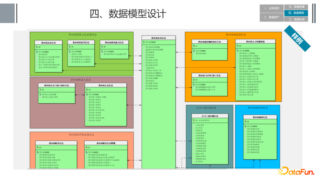 基于数据标准构建数据模型。上图为采购域的数据模型,模型中的每个字段都与数据标准形成了映射关系。