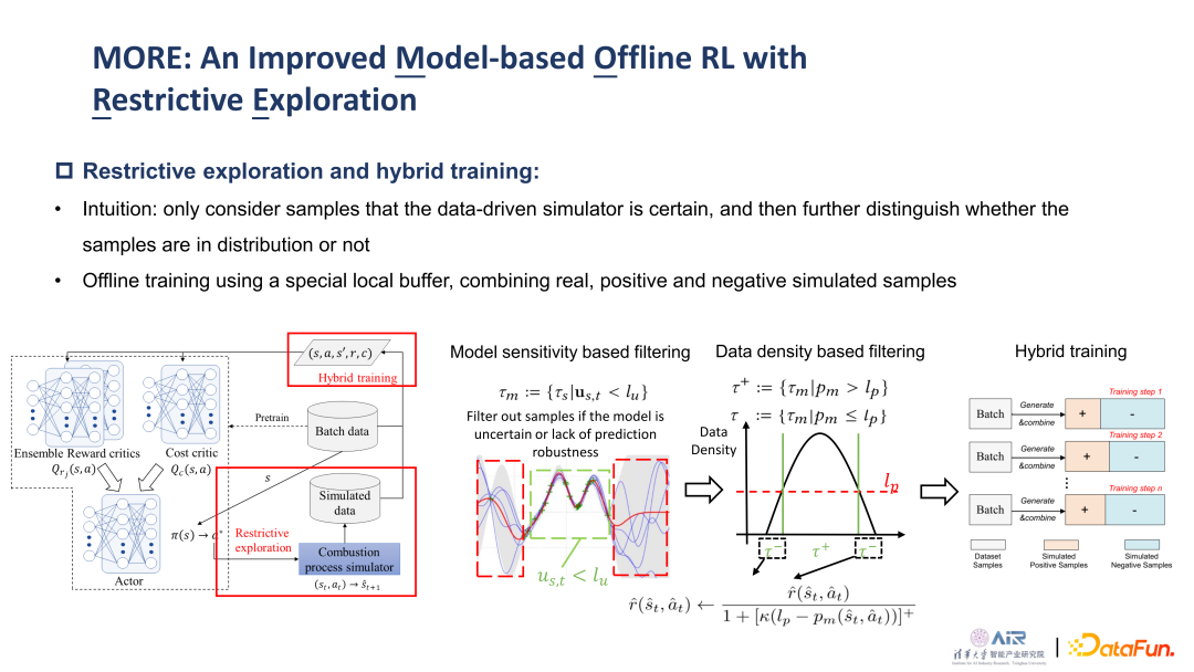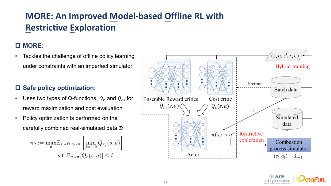 这个问题相对比较复杂,70%~80% 的工作都集中在建模和约束设计上。这个问题的规模比较大,需要优化的原始控制量有 100 多个,可能涉及到成千上万的处理器、大量的领域知识和安全约束。17. MORE:基于限制性探索的离线强化学习方法