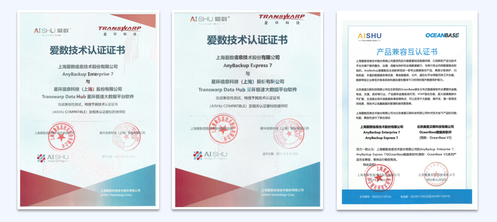 不仅如此,AnyBackup 还可为 TDH、OceanBase 等数据安全保驾护航,并获得了生态互认证,凭借在各自优势领域的技术积累,携手为广大客户提供更优质的服务。