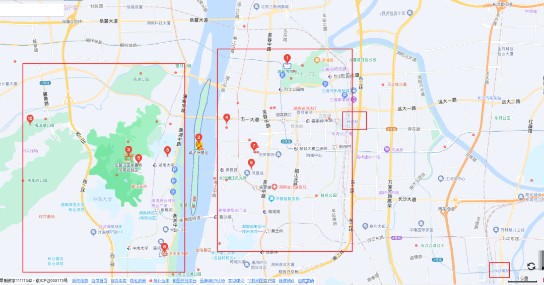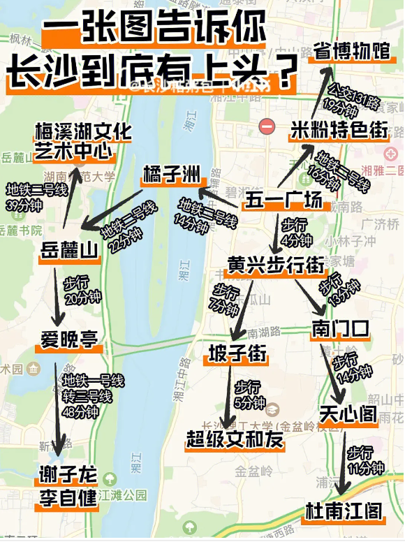 长沙站->米粉特色街->长沙IFS>>橘子洲>五一广场