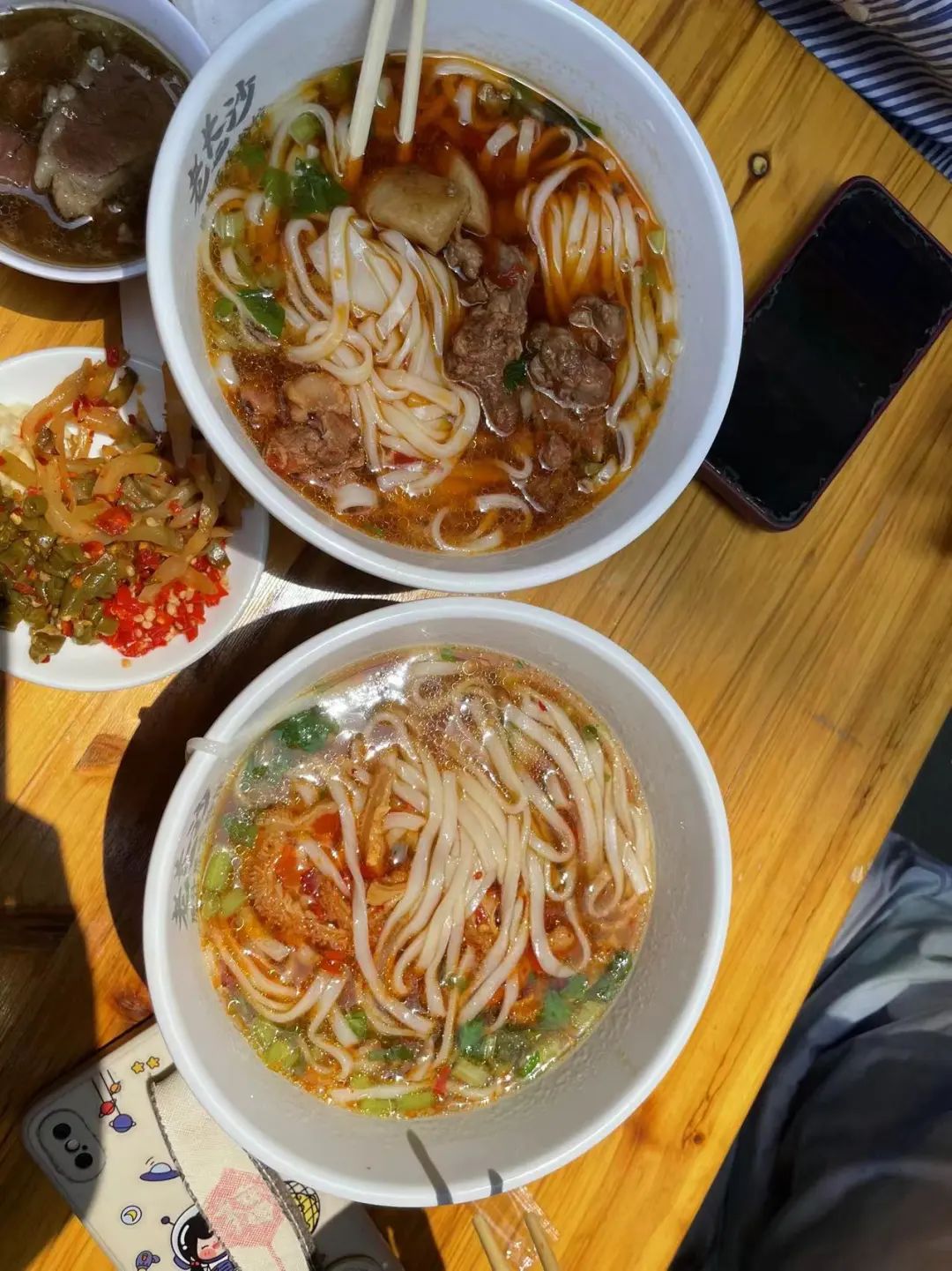 按照热度我们到了一家粉店,排队的人还真不少。大概10多分钟之后出锅的米粉,口感比我预期中要软烂一些,这碗粉的魅力在于吃的时候还不错,吃完之后感觉缺点啥,还想再吃一碗。还有就是这种食材一般不太适合长距离的外卖,时间稍长一些就泡了,所以这也使看附近送米粉的外卖不大多的原因吧。