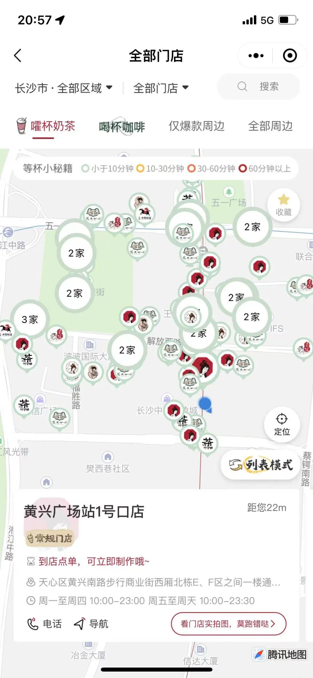 这边的一大特色就是茶颜悦色,每隔一小段路就有一家,我查了下长沙有差不多400多家店,关键是家家都爆满,平均排队时长在半个小时左右,有些更长的甚至在1个多小时。
