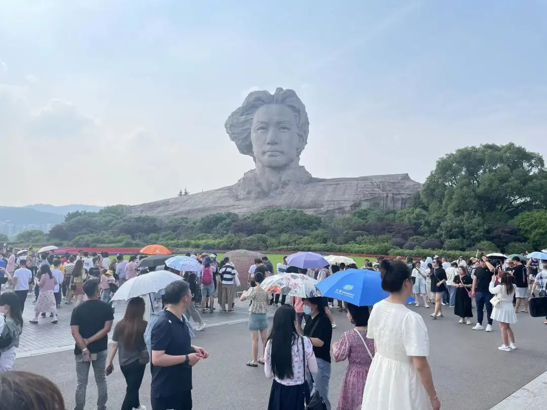 青年艺术雕塑大概有30多米高,有很多考究的地方,比如整个雕塑是由8000多块采自福建高山的永定红花岗岩石拼接而成,需要和整个景点浑然一体,也不能突兀,突出表现伟人青年时代胸怀大志、风华正茂的气概。打卡的人络绎不绝,让我不禁想到四个字“风华正茂”。