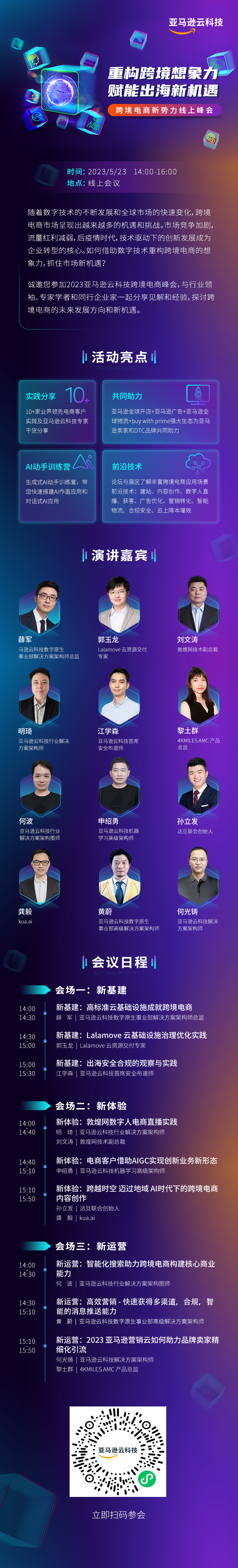 错过了亚马逊云科技跨境电商峰会的精彩瞬间?还有更多精彩内容等你来!即刻报名注册观看5月23日跨境电商新势力线上峰会,届时我们将会对每个场景进行更详细的解读,期待与你线上见!