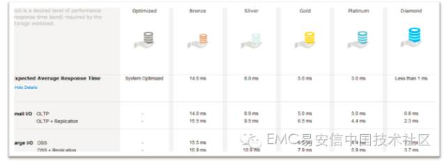 整篇来看,最佳实践是针对VMAX3中新推出的叫做服务级别对象(SLO)的一个性能特性展开的,书中的第一部分有相关的具体介绍,这个功能最早的雏形是VMAX Cloud Edition中就提出的,后来因为实施效果不错,也被加入到了VMAX3中。SLO的主要作用就是预定义性能配置,数据库管理员可以通过它更简单地针对数据库服务和存储性能要求,以租户为单位,调整VMAX3提供给特定数据库的性能水平,简化原有过多的数据库端的手动调整,只需要一个点击即可完成性能优化。