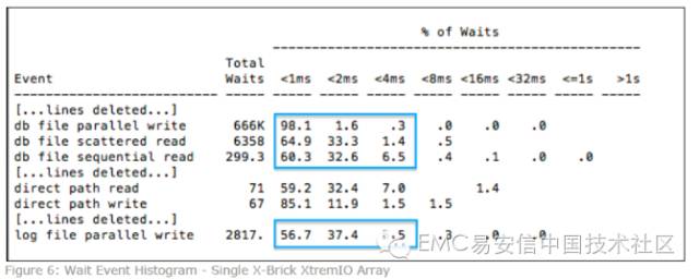 一个小时的压力测试下来,XtremIO每秒钟 7kTPS,2.9w SQL Query,16w Logical I/O,实际到XtremIO的物理I/O写近10万每秒(读8w3,写1w5),每秒处理了21MB的Redo Log。综合下来90%的IO在2ms内完成,80%在1ms内完成。