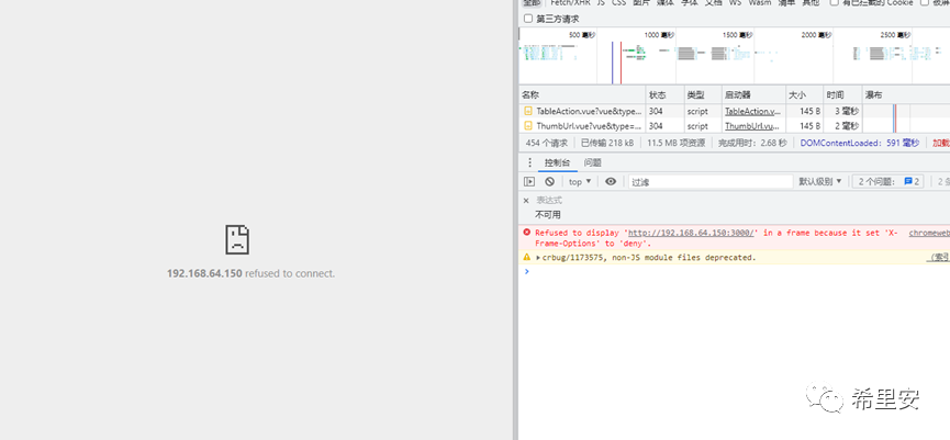 Refused to display 'http://192.168.64.150:3000/'in a frame because it set 'X-Frame-Options' to 'deny'