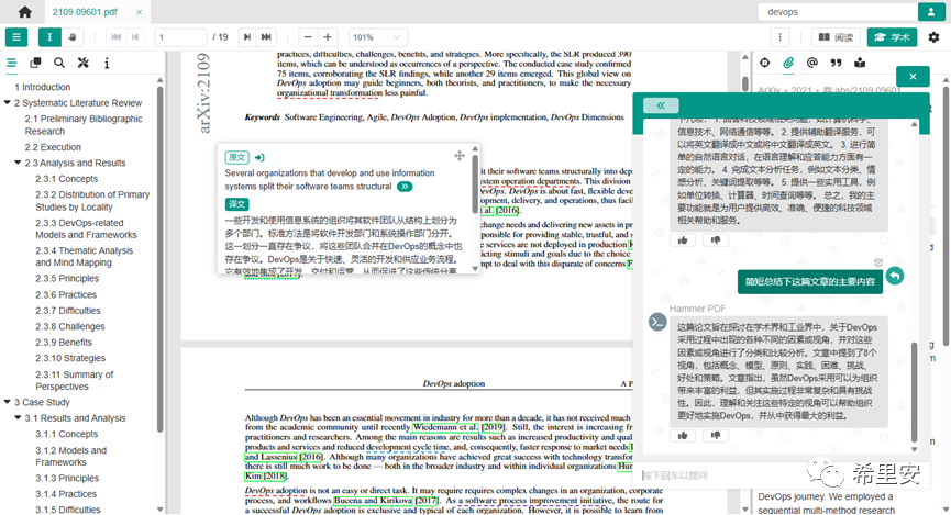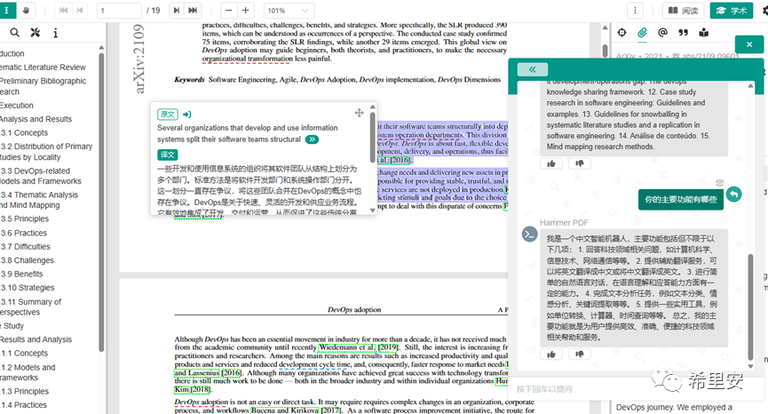 为啥推荐呢,因为我们知道,一些细分领域,网上搜到的文章东拼西凑居多,而且有些文章也没有具体出处,没有相关背景。遇到自己行业领域的问题,想找到合适的答案就会迷失在搜索引擎中,而如果你会使用学术类工具查询的话,说不定就会事半功倍,有些文章的引用也是有依据可靠,对于提升自己的研究能力是非常有帮助的。而如果你看的是国外的论文,那么这款工具更加适合了,有学术词语的标注,可以多语言翻译,主要面对的也是计算机行业。最给力的是,这款软件近期更新了对话机器人,就是引入了chatgpt功能,对话式阅读体验感就上升了,当然如果有更好的工具,大家也别忘了推荐哦。
